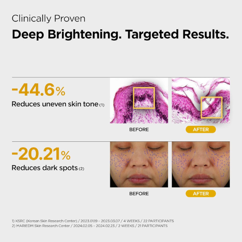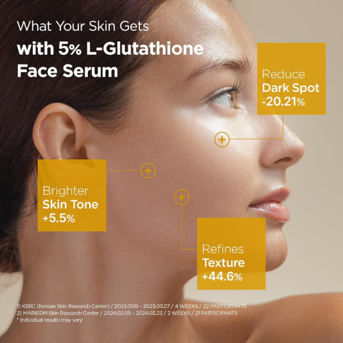 Triple Brightening Fusion: Combines 5% Glutathione, 2% Niacinamide, and 1% Tranexamic Acid to blur dark spots and refine rough skin texture.